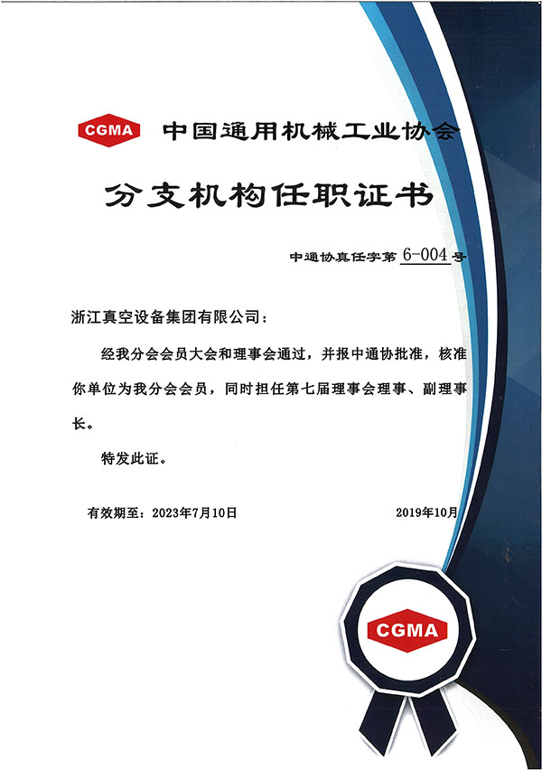 • 中國通用機械工業(yè)協(xié)會分支機構(gòu)任職證書